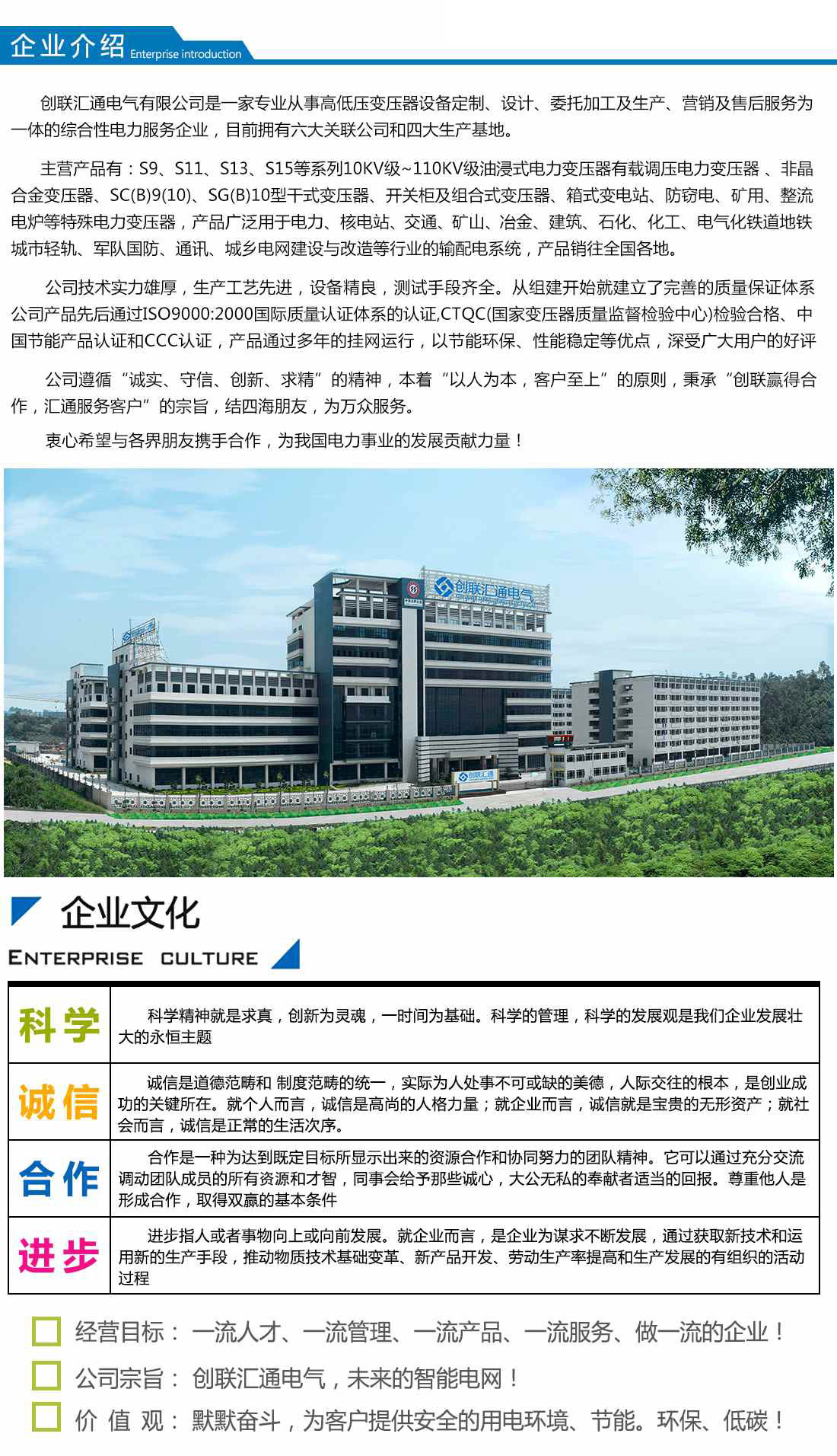 創聯匯通主營產品有:S11(13)、S20(22)新能效及SH15系列10KV級~110KV級油浸式電力變