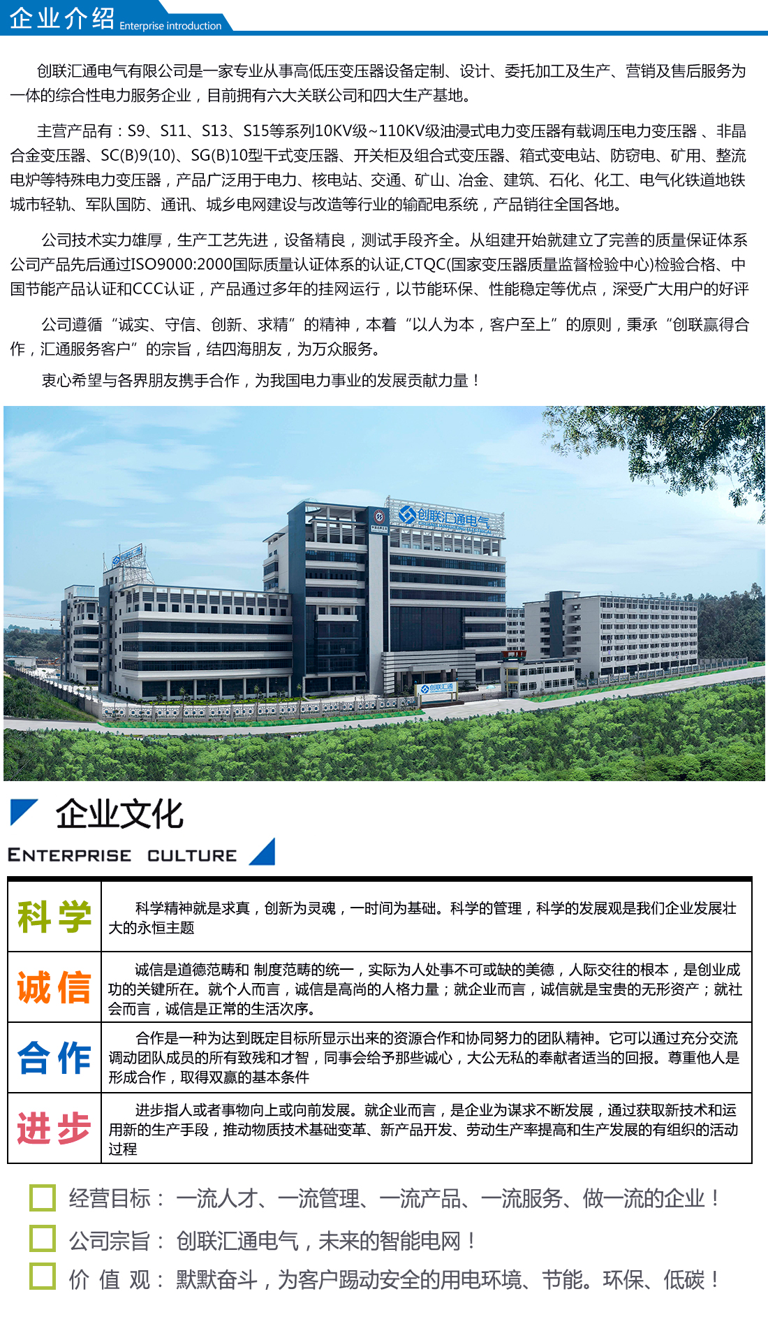 創聯匯通主營產品有:S11(13)、S20(22)新能效及SH15系列10KV級~110KV級油浸式電力變