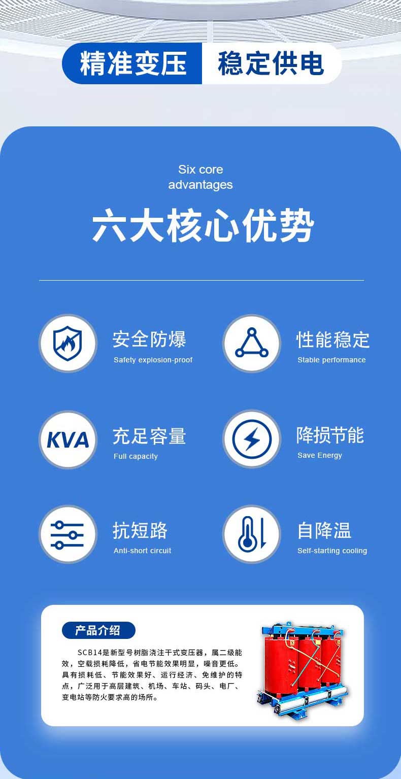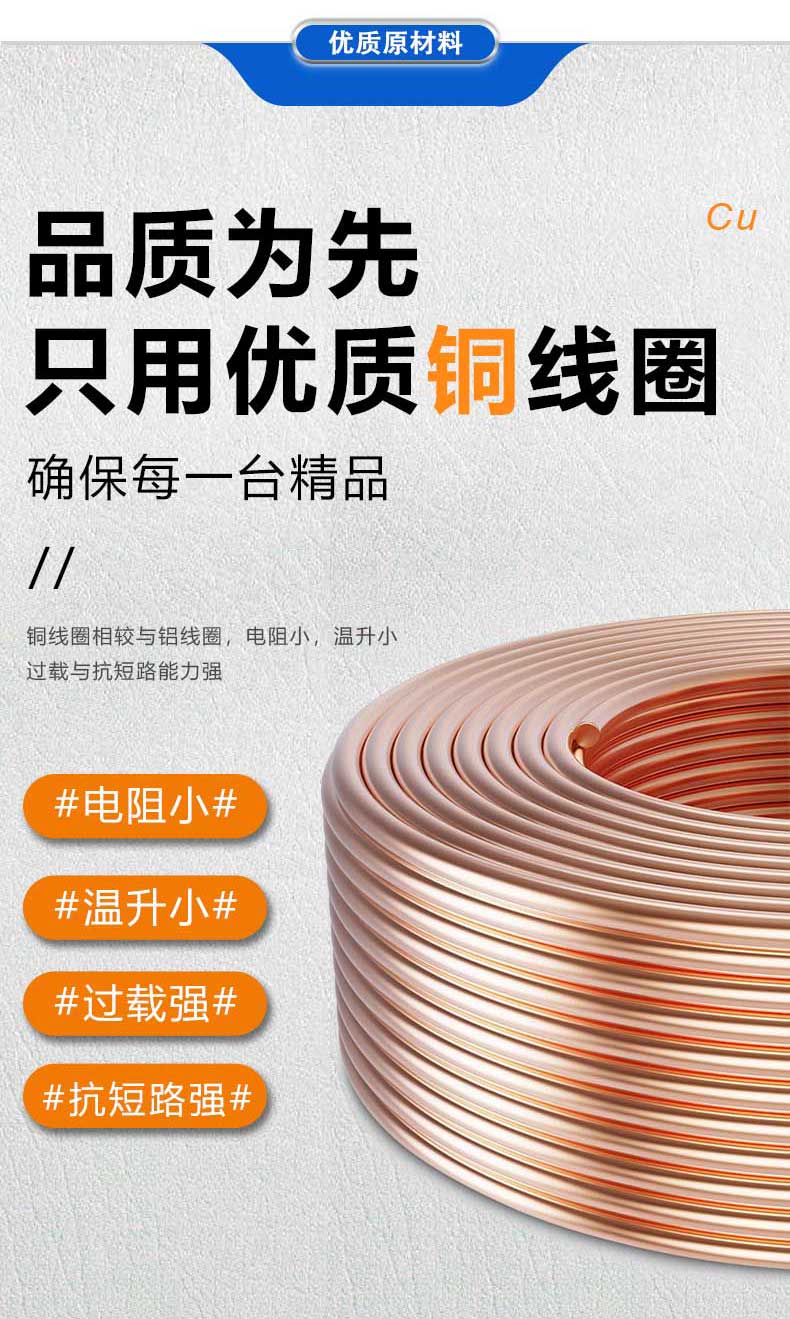 答 01全新硅鋼片噪音小,損耗低,運行穩定,壽命長02純銅線圈過載力強無氧銅線,穩定性更強,導電性能更好,抗短能力更強03浸水運行IP68防護等級,浸水運行穩定可靠04穩定可靠全密封,全絕緣的接線方式,高壓側帶熔斷保護...